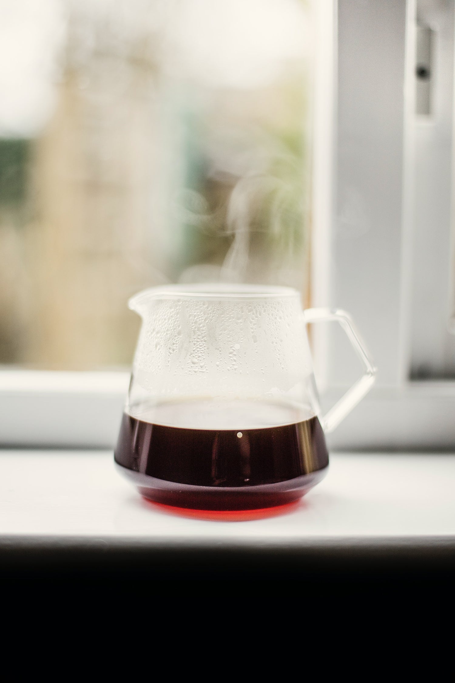 - Gieße den gebrühten Kaffee in Tassen oder eine Kanne.